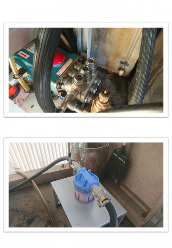 2025/11/10 洗車機の修理と浄水フィルターの設置 株式会社和孝運輸では日々トラックが稼働しております。 延べ30台以上のトラックを維持するためにも、 マメな洗車を実施し、車体をきれいに保っています。 このことにより洗車機の使用頻度はかなり高く、 機械を酷使してしまいがちになります。 定期的にポンプの部品を交換しておりますが、 洗車機で使用している水質が低い為、水分中に不純物が多く、 故障の原因になっていました。 今回は浄水フィルターを導入する事により、 水質がかなり改善され、臭い・濁り・不純物等が激減し、 非常に良好な状態で洗車する事が出来るようになりました。